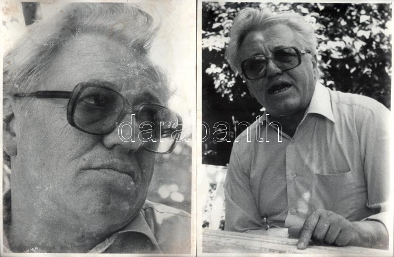 Leírás: Sütő András (1927-2006) íróról készült portrék, 5 db, ázásnyomokkal, foltokkal, 18×24 cm