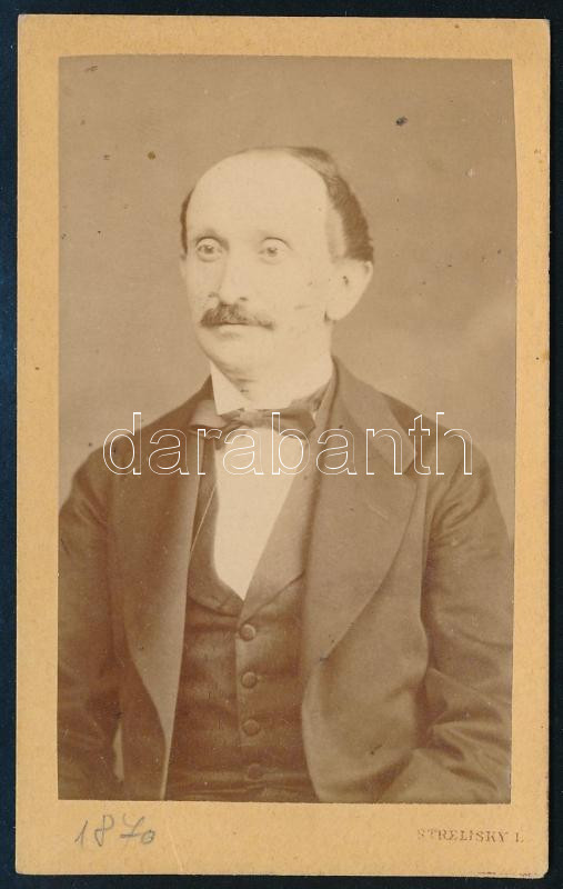 Leírás: cca 1870 Kováts Kálmán portréja, hátoldalán feliratozott keményhátú fotó Strelitzky Lipót fényképész pesti műterméből, 10,5×6,5 cm