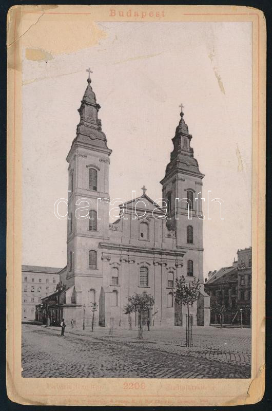 Leírás: cca 1880 Budapest-Belvárosi Nagyboldogasszony Főplébánia-templom, keményhátú fotó sérülésekkel, 16,5×10,5 cm