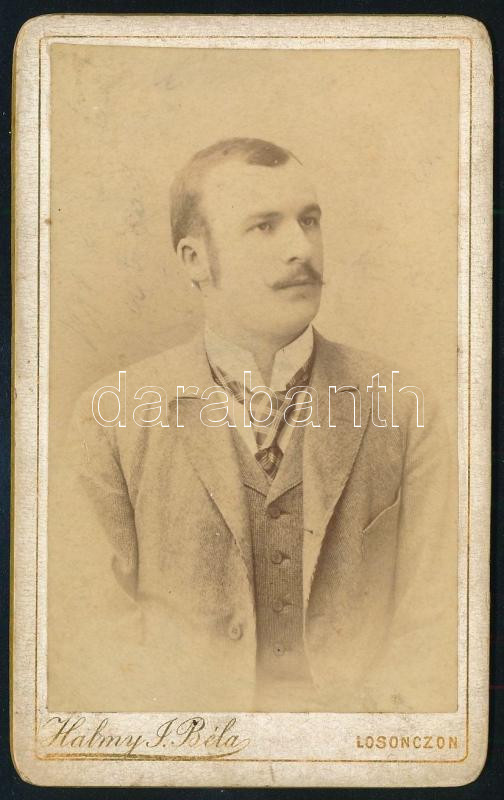 cca 1885 Férfiportré, keményhátú fotó Halmy József Béla losonci műterm... https://www.darabanth.com/hu/477-Gyorsarveres/477.0/Fotomuveszet/Foto~2000001/cca-1885-Ferfiportre-kemenyhatu-foto-Halmy-Jozsef-Bela-losonci-mutermebol-11C3976-5-cm~II3242209