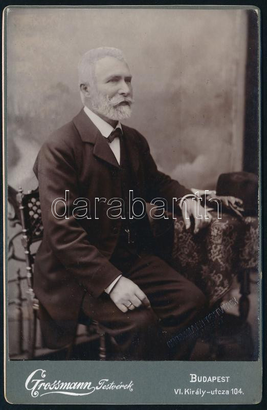 cca 1900 Beazonosítandó úr portréja, fedőfehérrel a haja és szakálla áthúzva, szárazbélygzővel is jelzett keményhátú fotó Grossmann testvérek budapesti műterméből, vágott, 16,5x10,5 cm