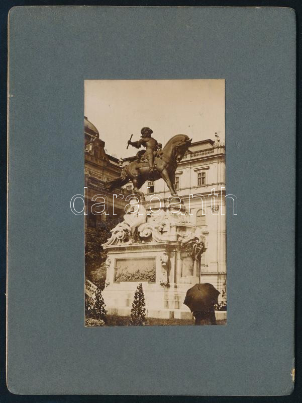Leírás: cca 1905 Budapest, Budai Vár, Savoyai Jenő szobor feliratozott keményhátú fotó 12x9 cm
