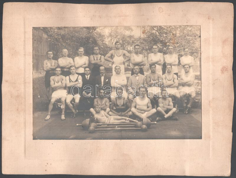 cca 1920-1930 Súlyemelők csoportképe, kartonra kasírozott fotó, jelzés... https://www.darabanth.com/hu/477-Gyorsarveres/477.0/Fotomuveszet/Foto~2000001/cca-1920-1930-Sulyemelok-csoportkepe-kartonra-kasirozott-foto-jelzes-nelkul-kisse-hulla~II3217751