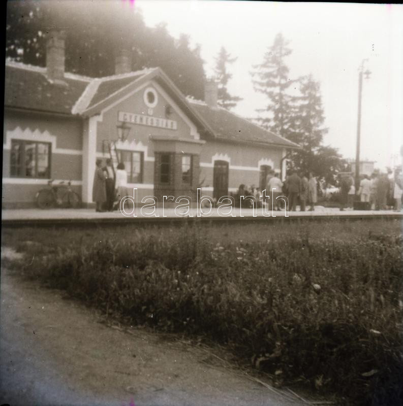 Leírás: cca 1935 Gyenesdiás, vasútállomás, 3 b 6×6 és 6×9 cm-es fotónegatív