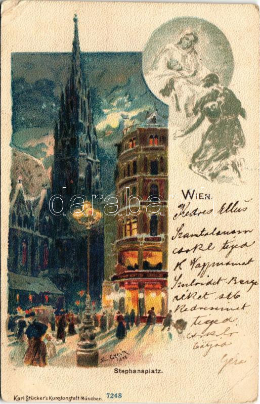 Leírás: 1899 (Vorläufer) Wien, Vienna, Bécs; Stephansplatz. Karl Stücker 7248. Art Nouveau litho (EK)