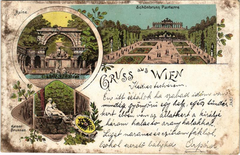 1907 Wien, Vienna, Bécs; Schönbrunn Parterre, Ruine, Kaiserbrunnen. Ar... https://www.darabanth.com/hu/477-Gyorsarveres/477.0/Kepeslapok/Ausztria~1500055/1907-Wien-Vienna-Becs-Schonbrunn-Parterre-Ruine-Kaiserbrunnen-Art-Nouveau-floral-litho-fl~II3243168