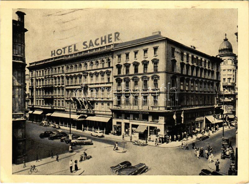 1958 Wien, Vienna, Bécs; Hotel Sacher, automobiles (EK) https://www.darabanth.com/hu/477-Gyorsarveres/477.0/Kepeslapok/Ausztria~1500055/1958-Wien-Vienna-Becs-Hotel-Sacher-automobiles-EK~II3247440