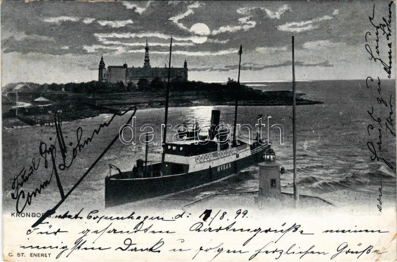 Leírás: 1899 (Vorläufer) Helsingor, Helsingör; Kronborg castle, steamship (EK)