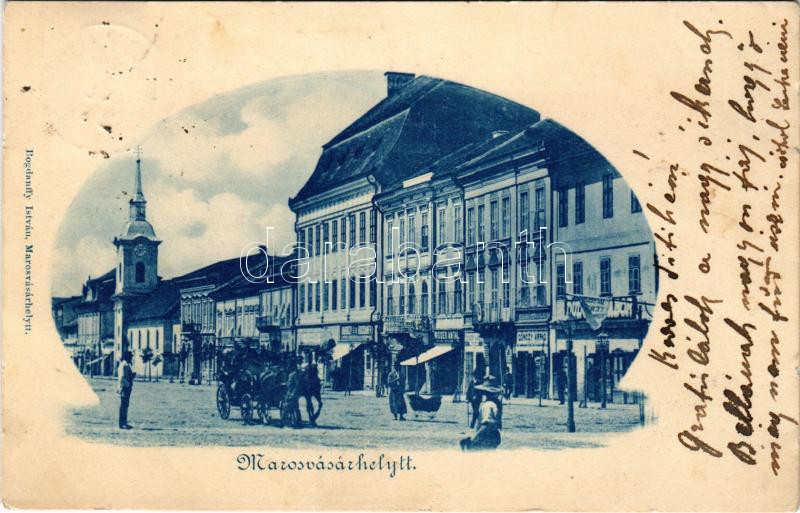 Leírás: 1899 (Vorläufer) Marosvásárhely, Targu Mures; tér, Gönczy Árpád, Widder Antal üzlete. Bogdánffy István kiadása / square, shops (kis szakadás / small tear)