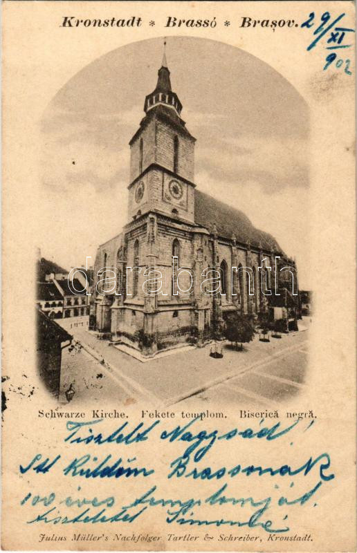 1902 Brassó, Kronstadt, Brasov; Fekete templom. Julius Müller's N... https://www.darabanth.com/hu/477-Gyorsarveres/477.0/Kepeslapok/Erdely~1500006/1902-Brasso-Kronstadt-Brasov-Fekete-templom-Julius-Mullers-Nachfolger-tartler-Schreiber-B~II3251567