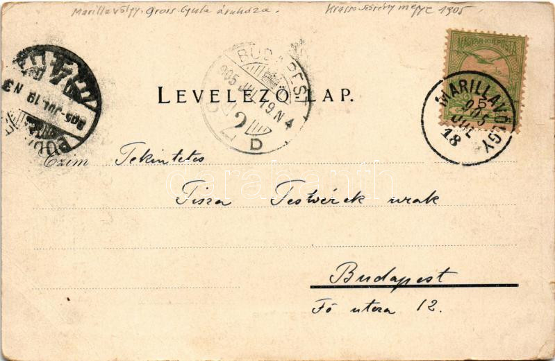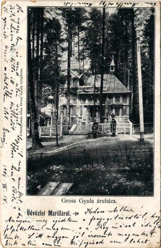 Leírás: 1905 Marilla, Marillavölgy, Marila; Gross Gyula üzlete és saját kiadása / publisher's shop (kis szakadások / small tears)