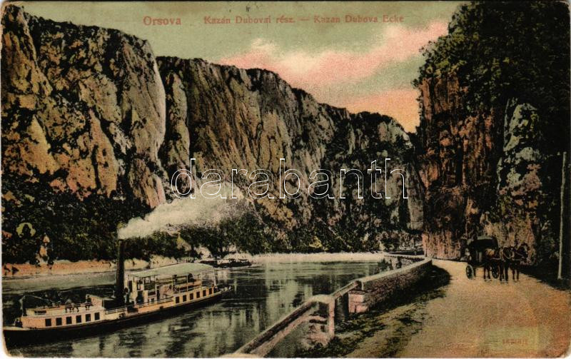 Leírás: 1908 Orsova, Kazán Dubovai része, gőzhajó / gorge, steamship (ázott sarok / wet corner)