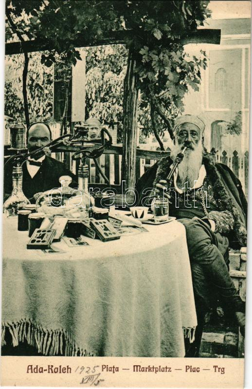 Ada Kaleh, piac, Kávéház vízipipázó Bego Mustafával. Lumina kiadása / ... https://www.darabanth.com/hu/477-Gyorsarveres/477.0/Kepeslapok/Erdely~1500006/Ada-Kaleh-piac-Kavehaz-vizipipazo-Bego-Mustafaval-Lumina-kiadasa-Marktplatz-Cafe-in-t~II3246030
