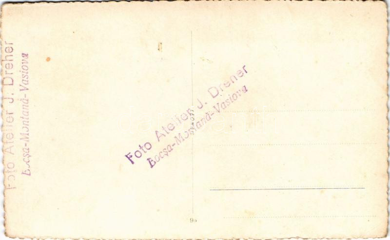 Leírás: Boksánbánya, Románbogsán, Németbogsán, Deutsch-Bogsan, Bocsa Montana; Vassafalvai (Vasziova) részlet, erdélyi folklór / Vasiova, Transylvanian folklore. Foto Atelier J. Dreher photo (EK)