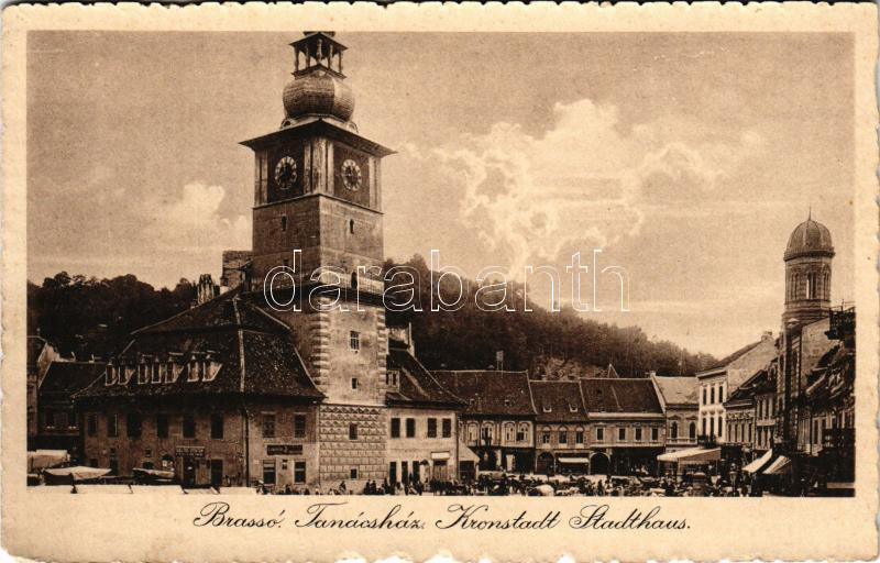 Brassó, Kronstadt, Brasov; Tanácsház, piac / town hall, market https://www.darabanth.com/hu/477-Gyorsarveres/477.0/Kepeslapok/Erdely~1500006/Brasso-Kronstadt-Brasov-Tanacshaz-piac-town-hall-market~II3246427