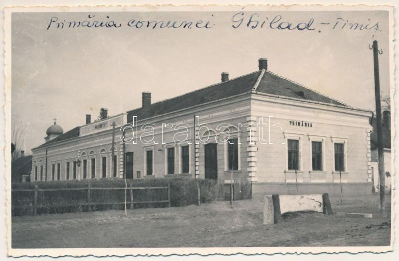 Gilád, Ghilad (Temes); Primaria comunei / Községháza / town hall. phot... https://www.darabanth.com/hu/477-Gyorsarveres/477.0/Kepeslapok/Erdely~1500006/Gilad-Ghilad-Temes-Primaria-comunei-Kozseghaza-town-hall-photo-ragasztonyom-glue-ma~II3242994