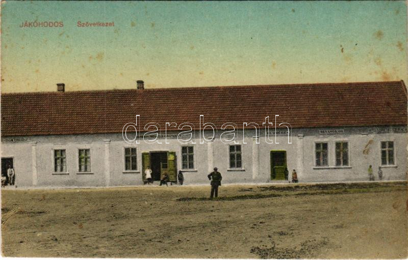 Leírás: Jákóhodos, Hodos (Bihar); Szövetkezet üzlete, húsmérés, olvasókör és hitelszövetkezet / cooperative shop, butcher, reading club and credit union (fl)