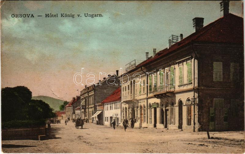Leírás: Orsova, Hotel König von Ungarn, shop / Rémi Magyar Király szálloda, Stuprih (?) Jakab üzlet (szakadás / tear)