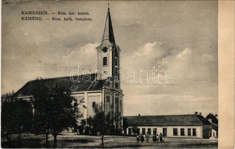 Leírás: 1938 Kéménd, Kamendin, Kamenin; Római katolikus templom / church (EK)