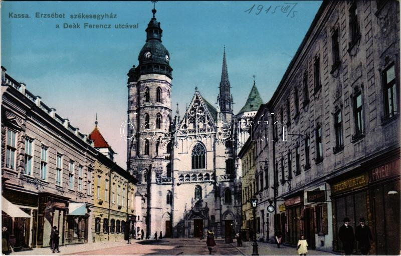 Kassa, Kosice; Erzsébet székesegyház, Deák Ferenc utca, Stern Viktor ü... https://www.darabanth.com/hu/477-Gyorsarveres/477.0/Kepeslapok/Felvidek~1500007/Kassa-Kosice-Erzsebet-szekesegyhaz-Deak-Ferenc-utca-Stern-Viktor-uzlete-Nyulaszi-Bela-ki~II3245037