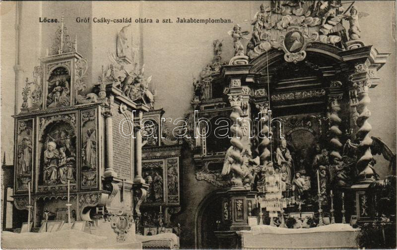 Lőcse, Levoca; Gróf Csáky család oltára a szt. Jakab templomban. Braun... https://www.darabanth.com/hu/477-Gyorsarveres/477.0/Kepeslapok/Felvidek~1500007/Locse-Levoca-Grof-Csaky-csalad-oltara-a-szt-Jakab-templomban-Braun-Fulop-kiadasa-churc~II3242805