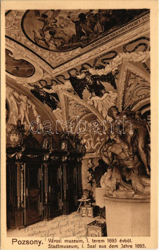 Pozsony, Pressburg, Bratislava; Városi múzeum belső, I. terem 1695 évb... https://www.darabanth.com/hu/477-Gyorsarveres/477.0/Kepeslapok/Felvidek~1500007/Pozsony-Pressburg-Bratislava-Varosi-muzeum-belso-I-terem-1695-evbol-museum-interior~II3245028