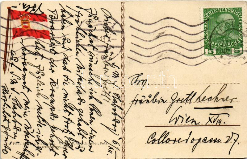 Leírás: 1913 SMS HABSBURG az Osztrák-Magyar Haditengerészet Habsburg-osztályú pre-dreadnought csatahajója / K.u.K. Kriegsmarine / Austro-Hungarian Navy battleship. Phot. Alois Beer, F.W. Schrinner