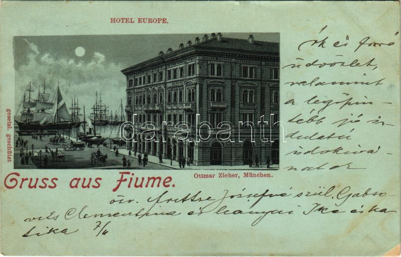 1898 (Vorläufer) Fiume, Rijeka; Hotel Europe Ottmar Zieher Art Nouveau... https://www.darabanth.com/hu/477-Gyorsarveres/477.0/Kepeslapok/Horvatorszag~1500012/1898-Vorlaufer-Fiume-Rijeka-Hotel-Europe-Ottmar-Zieher-Art-Nouveau-litho-azott-wet-damage~II3007906