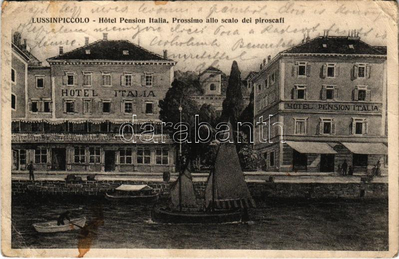 Leírás: 1927 Mali Losinj, Lussinpiccolo; Hotel Pension Italia. Prossimo allo scalo dei piroscafi / hotel (EB)