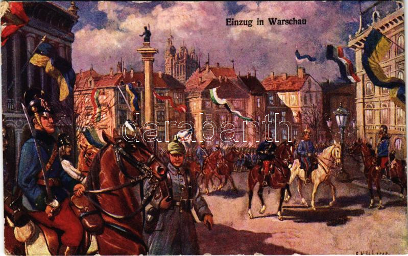 Leírás: 1915 Bevonulás Varsóba / Der Einzug in Warschau / WWI German and Austro-Hungarian K.u.K. military art postcard, entry to Warsaw s: F. Höllerer (EK)