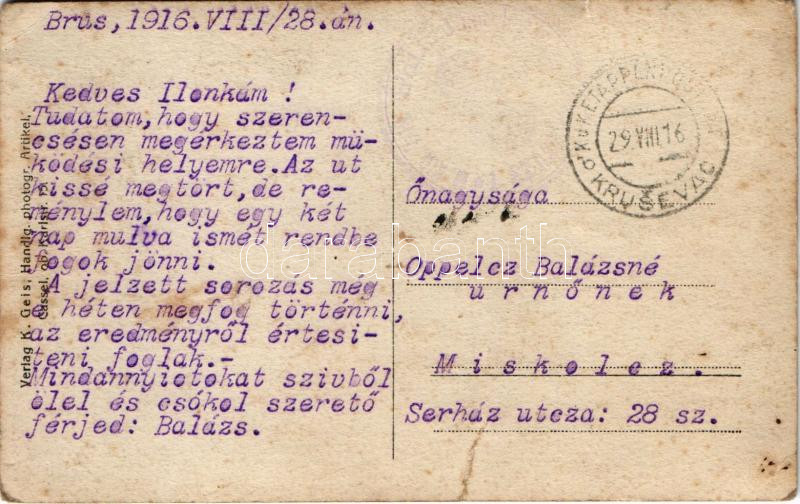 Leírás: 1916 Osztrák-magyar katonák csoportja / WWI Austro-Hungarian K.u.K. military, group of soldiers. photo + "K.U.K. ETAPPENPOSTAMT KRUSEVAC" (fa)