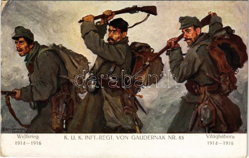 1916 Weltkrieg 1914-1916 - K.u.K. Inft.-Regt. von Gaudernak Nr. 85. Verlag K.u.K. Kmdo. der 27. Inf. Trp. Dion. A tiszta jövedelem a Kárpátokban elpusztított falvak újjáépítésére és a második hadsereg legénységi özvegyei és árvái alapítványra fordíttatik / WWI Austro-Hungarian military infantry regiment s: Hans Larwin (EK)