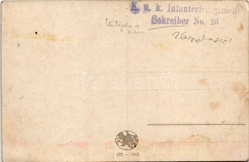 Leírás: Gestörter Abschied / WWI Austro-Hungarian K.u.K. military art postcard + "K.u.K. Infanterieregiment Schreiber No. 26." (fl)