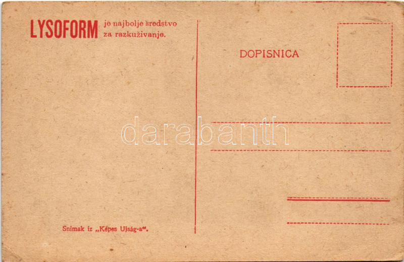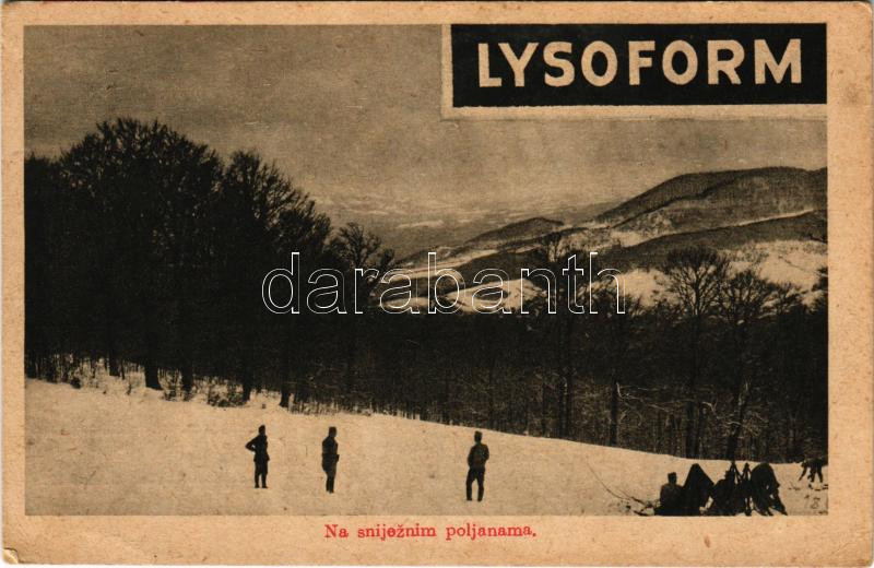 Leírás: Na snijeznim poljanama / WWI Austro-Hungarian K.u.K. military, soldiers in the snow. Lysoform disinfectant advertisement (EK)