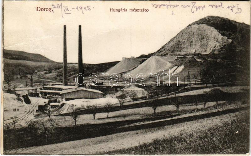 1915 Dorog, Hungária mésztelep (gyűrődés / crease) https://www.darabanth.com/hu/477-Gyorsarveres/477.0/Kepeslapok/Magyarorszag~1500005/1915-Dorog-Hungaria-mesztelep-gyurodes-crease~II3250829