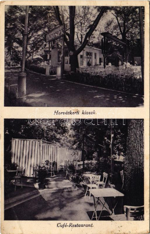 1930 Budapest IV. Horvátkerti kioszk, Café-Restaurant, étterem és kávé... https://www.darabanth.com/hu/477-Gyorsarveres/477.0/Kepeslapok/Magyarorszag~1500005/1930-Budapest-IV-Horvatkerti-kioszk-Cafe-Restaurant-etterem-es-kavehaz-kert-Vaci-u-16~II3244246