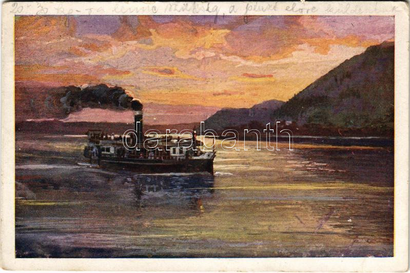 Leírás: 1930 Visegrád, Esti hangulat. Művészlevelezőlap M.F.T.R. 6314-5. Klösz műintézet (EK)