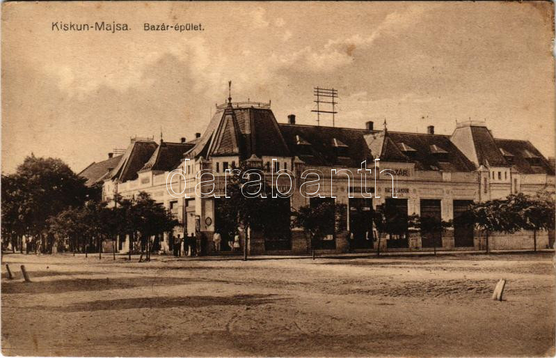 Leírás: 1931 Kiskunmajsa, Bazár épület, gyógyszertár, Rácz E. Sándor, Simon István üzlete. Váradi István kiadása (b)