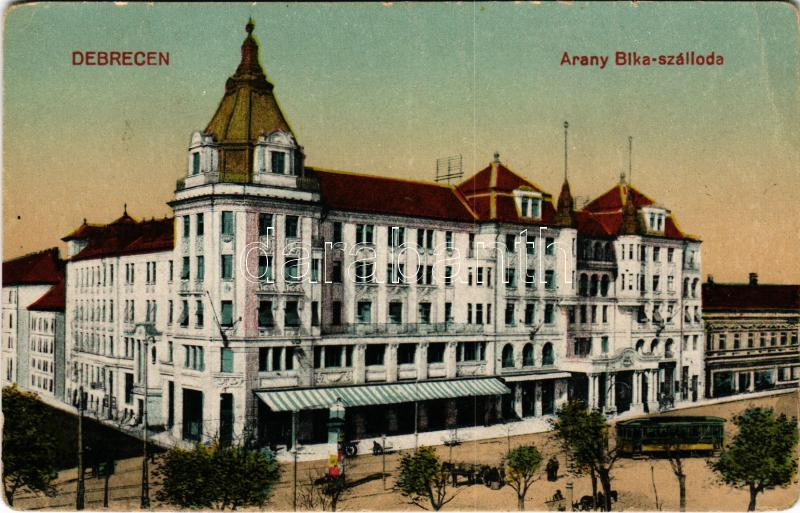 Debrecen, Arany Bika szálloda, villamos (EB) https://www.darabanth.com/hu/477-Gyorsarveres/477.0/Kepeslapok/Magyarorszag~1500005/Debrecen-Arany-Bika-szalloda-villamos-EB~II3242594