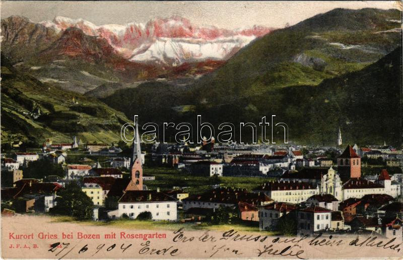 1904 Bolzano, Bozen (Südtirol); Kurort Gries bei Bozen mit Rosengarten... https://www.darabanth.com/hu/477-Gyorsarveres/477.0/Kepeslapok/Olaszorszag~1500096/1904-Bolzano-Bozen-Sudtirol-Kurort-Gries-bei-Bozen-mit-Rosengarten-EB~II3250447