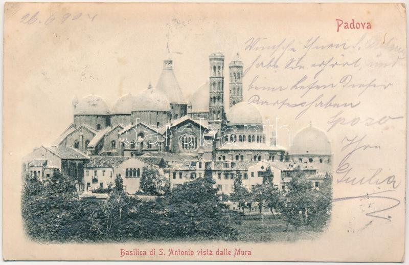 1904 Padova, Padua; Basilica di S. Antonio vista dalle Mura. Emb. (EK) https://www.darabanth.com/hu/477-Gyorsarveres/477.0/Kepeslapok/Olaszorszag~1500096/1904-Padova-Padua-Basilica-di-S-Antonio-vista-dalle-Mura-Emb-EK~II3247815