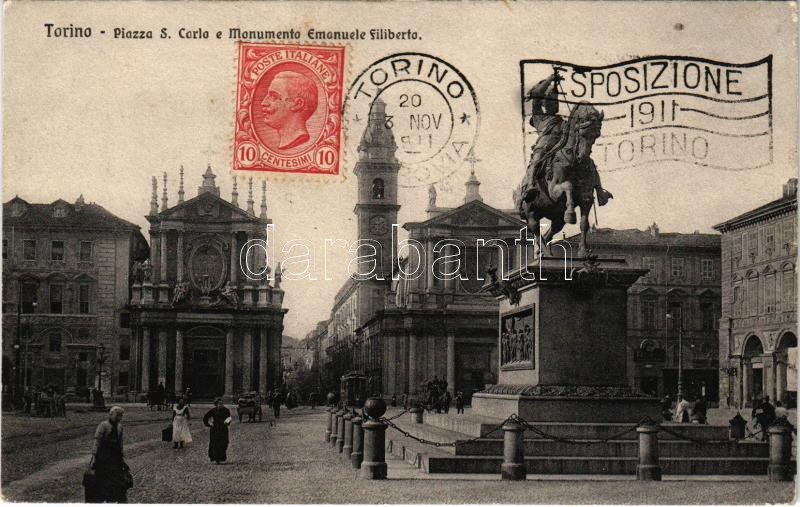 1911 Torino, Turin; Piazza S. Carlo e Monumento Emanuele Filiberto / s... https://www.darabanth.com/hu/477-Gyorsarveres/477.0/Kepeslapok/Olaszorszag~1500096/1911-Torino-Turin-Piazza-S-Carlo-e-Monumento-Emanuele-Filiberto-square-monument-tram-EK~II3246254