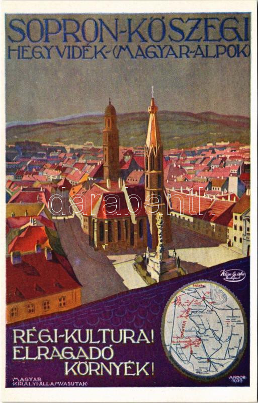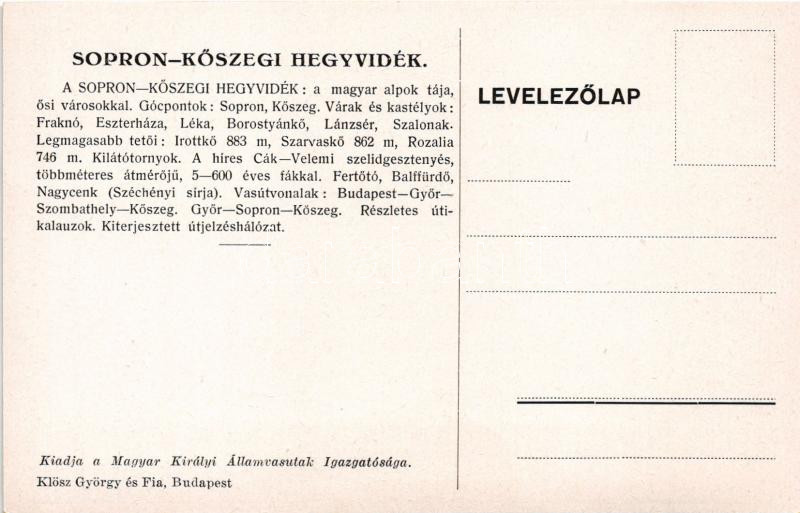 Sopron-Kőszegi Hegyvidék (Magyar Alpok); A Magyar Királyi Államvasutak (MÁV) vasúti turisztikai reklám képeslapja. Klösz György és Fia / Hungarian State Railways tourism campaign advertisement s: Andor L.