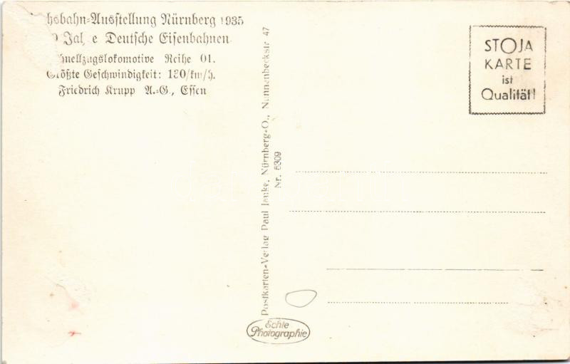 Reichsbahn Ausstellung Nürnberg 1935, Schnellzugslokomotive Reiche 01. / German railway expo, locomotive, train / Német vasúti kiállítás, gyorsvonati mozdony (Rb)