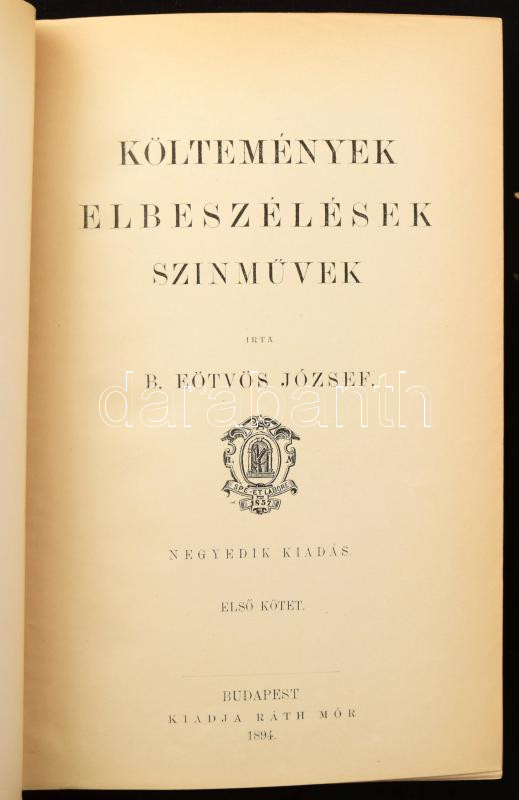 B. Eötvös József: Költemények, elbeszélések, színművek I-II. köt. Réva... https://www.darabanth.com/hu/477-Gyorsarveres/477.0/Konyvek/Konyvek-Egyeb-ritkasagok~2000020/B-Eotvos-Jozsef-Koltemenyek-elbeszelesek-szinmuvek-I-II-kot-Revai-fele-Salon-Kony~II3247968