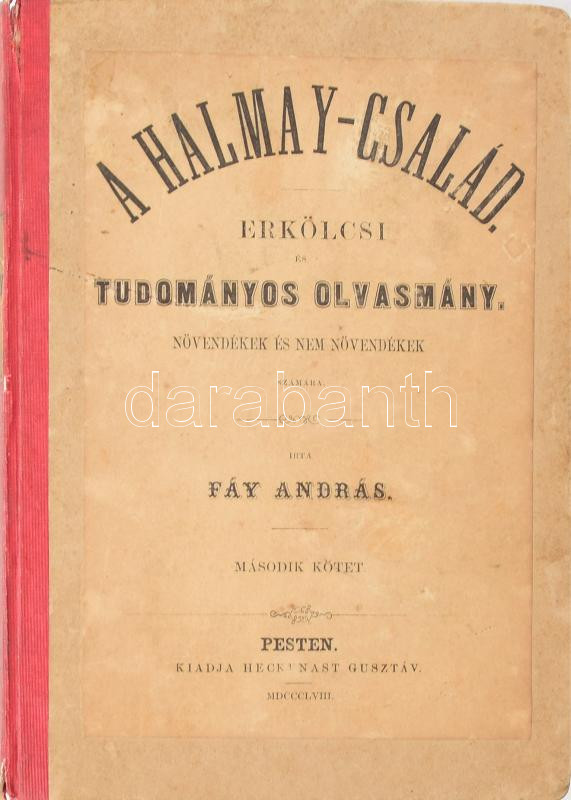 Erkölcsi és tudományos olvasmány, növendékek és nem növendékek számára. 2. köt. Pesten, 1858. Heckenast. 285 l. 1 sztl. lev. Első kiadás! Kiadói félvászon kötésben