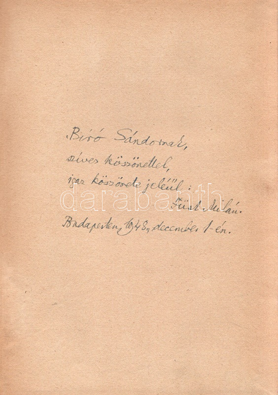 Dedikált: ,,Bíró Sándornak, szíves köszönettel, igaz köszönete jeléül: Füst Milán. Budapesten, 1948. december 1-én".