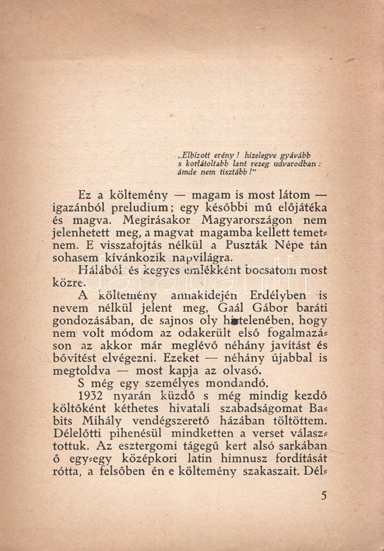 Illyés Gyula költeménye először 1933-ban jelent meg, Erdélyben, a szerző nevének feltüntetése nélkül. Az új kiadás előszavában Illyés Gyula a hosszú költemény születésének körülményeit részletezi, illetve indokolja, hogy a Babits esztergomi házában született költemény miért nem jelenhetett meg a Nyugatban. Oldalszámozáson belül Szőnyi István három egész oldalas illusztrációjával.