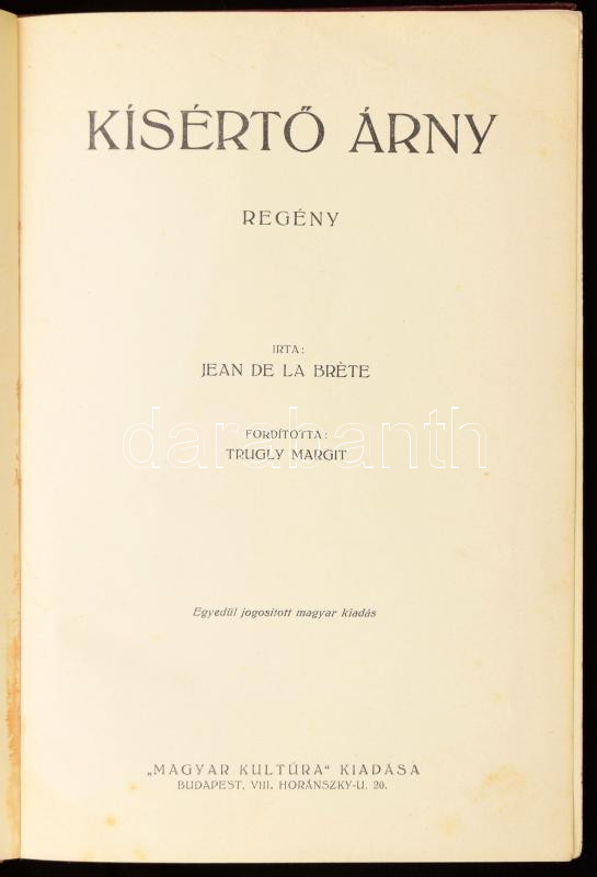 Jean de la Bréte: Kísértő árny. Ford.: Trugly Margit. Bp., ,"Magy... https://www.darabanth.com/hu/477-Gyorsarveres/477.0/Konyvek/Konyvek-Egyeb-ritkasagok~2000020/Jean-de-la-Brete-Kiserto-arny-Ford-Trugly-Margit-Bp-Magyar-Kultura-106-p-Kiadoi-a~II3253498