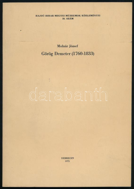 Molnár József: Görög Demeter (1760-1833). Hajdú-Bihar Megyei Múzeumok ... https://www.darabanth.com/hu/477-Gyorsarveres/477.0/Konyvek/Konyvek-Egyeb-ritkasagok~2000020/Molnar-Jozsef-Gorog-Demeter-1760-1833-Hajdu-Bihar-Megyei-Muzeumok-Kozlemenyei-30-szam~II3244244